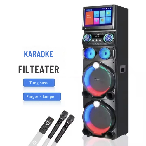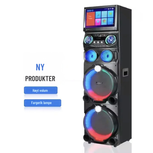 Forvandle stuen din til en live konsertscene, hjemmekino og ekte karaokestudio med VibeBlaze™ GD-1419. Dette komplette multimediesystemet kombinerer en stor HD-berøringsskjerm på 15,4”, kraftige 12” høyttalere, trådløse mikrofoner og innebygd Android-plattform for streaming, karaoke og filmavspilling. Perfekt for hjemmet, fester, arrangementer, hytter eller profesjonell bruk.